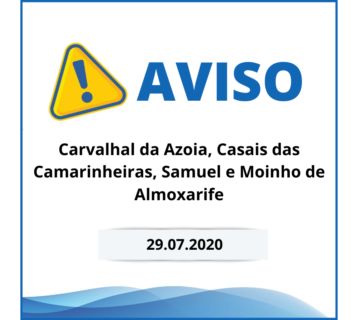 Interrupção do Abastecimento de ÁguaVitor Miranda29 de Julho, 2020A ABMG informa os utilizadores das localidades de Carvalhal da Azoia, Casais das Camarinheiras, Samuel e Moinho de Almoxarife, concelho ... Ler mais