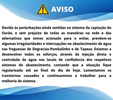 Interrupção do Abastecimento de ÁguaVitor Miranda4 de Novembro, 2021Informam-se os utilizadores de Rua de S. Tiago e Santa Rita – Pereira, concelho de Montemor-o-Velho, que podem verificar-se períodos ... Ler mais