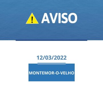 Interrupção do Abastecimento de ÁguaVitor Miranda11 de Março, 2022Informam-se os utilizadores da Urbanização da Luz e Vale do Mondego, concelho de Montemor-o-Velho, que podem verificar-se períodos de interrupção ... Ler mais