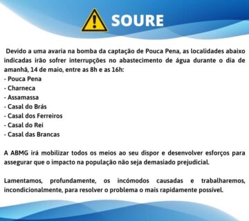 ATUALIZAÇÃO – Aviso aos utilizadores do concelho de SoureVitor Miranda13 de Maio, 2022Interrupções até às 19h00, durante o dia 14 de maio. ... Ler mais