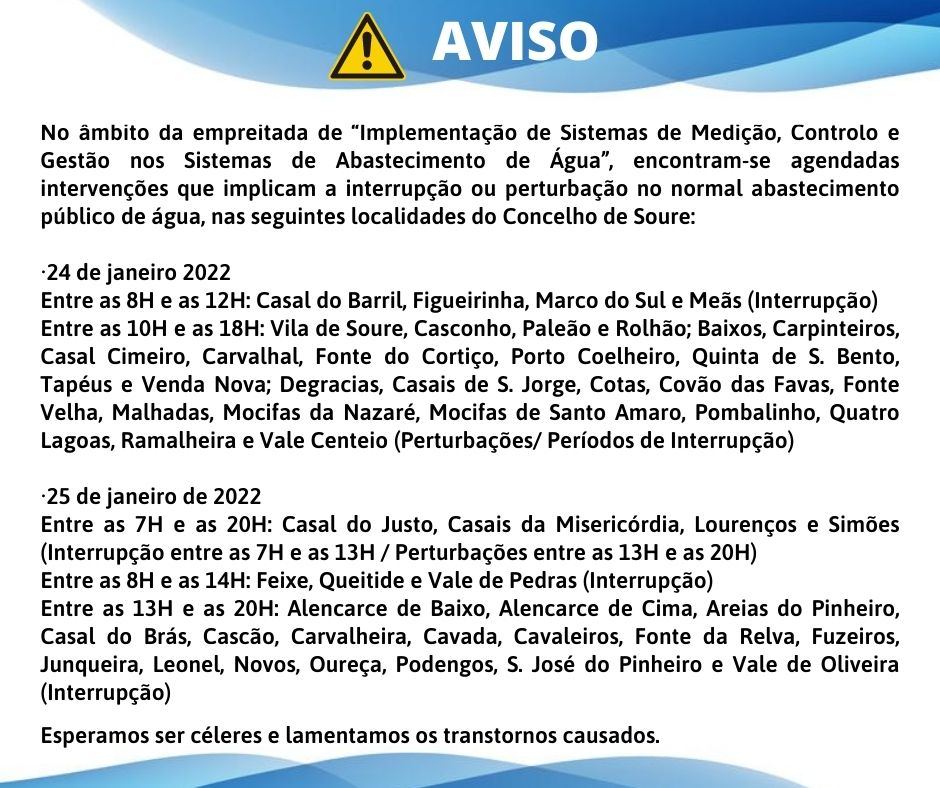 Aviso aos utilizadores do concelho de Soure