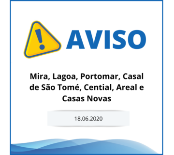 Interrupção do Abastecimento de ÁguaVitor Miranda17 de Junho, 2020A ABMG informa os utilizadores de Mira, Lagoa, Portomar, Casal de São Tomé, Cential, Areal e Casas Novas , Município ... Ler mais