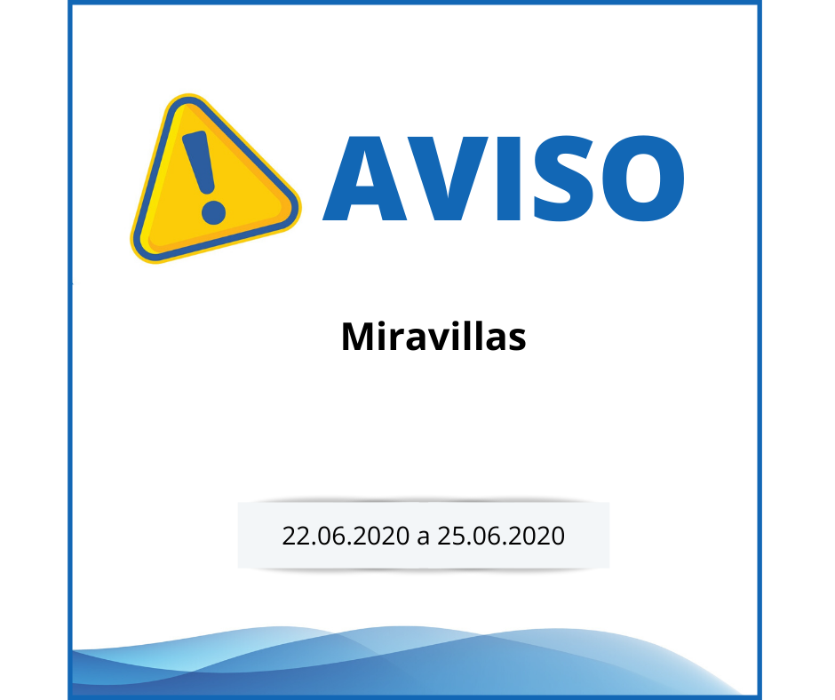 A ABMG informa os utilizadores da Rua das Rosas, Rua das Dálias, Rua das Orquídeas e Rua das Buganvílias, no Miravillas, concelho de Mira, que haverá condicionamento de circulação na via pública, a partir do dia 22/06/2020 até ao dia 25/06/2020, das 8H00 até às 18H00, em virtude da realização de obras de beneficiação do serviço.