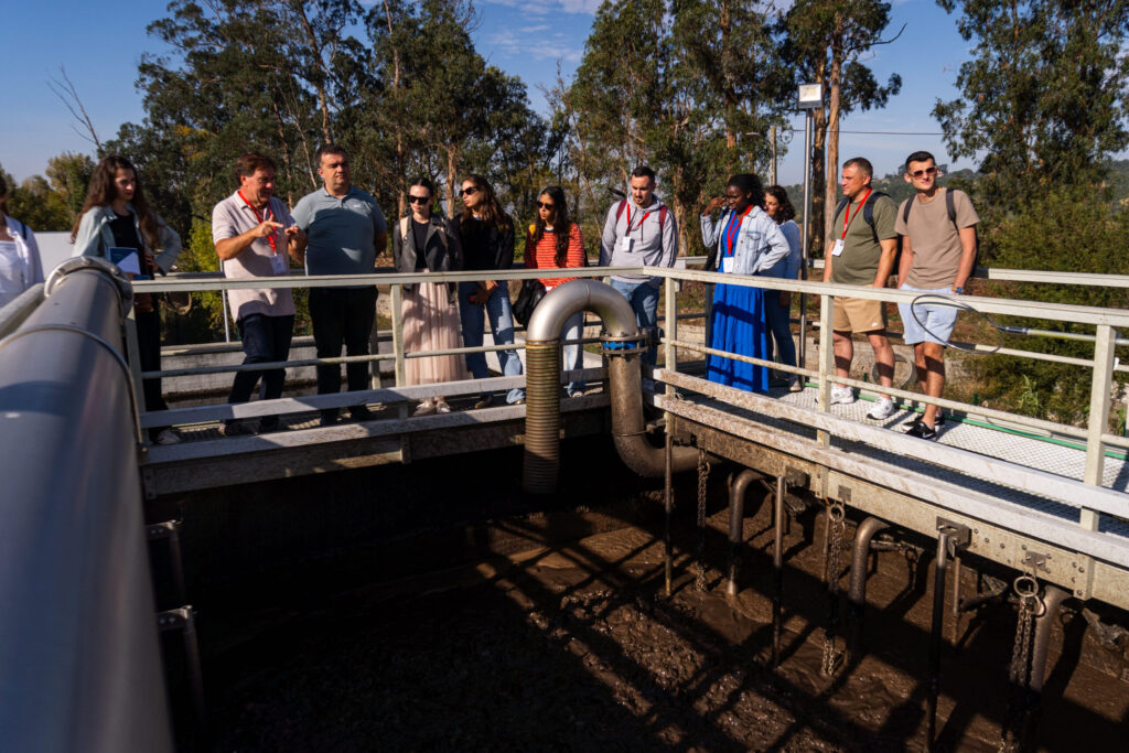 Durante a deslocação às instalações da ETAR de Montemor-o-Velho, os participantes tiveram oportunidade de conhecer de perto o funcionamento do sistema de tratamento de águas residuais, compreender as etapas de reutilização da água tratada e observar boas práticas de sustentabilidade aplicadas ao setor da engenharia e ambiente.
