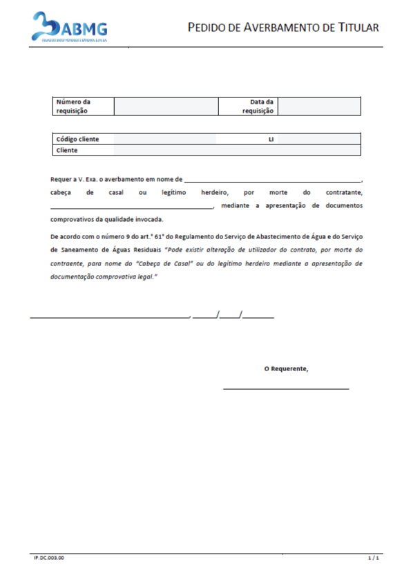 Pedido de averbamento de titular