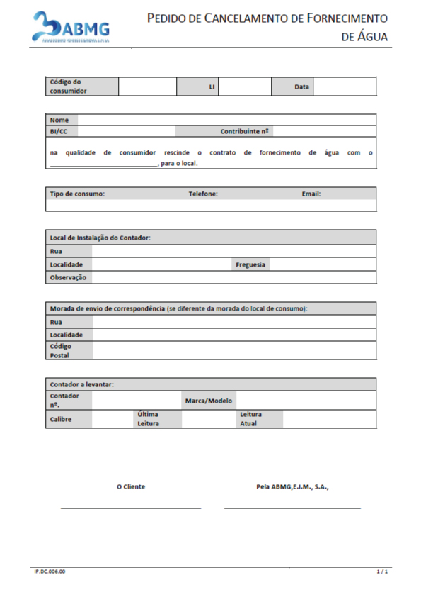 Pedido de cancelamento de fornecimento de água