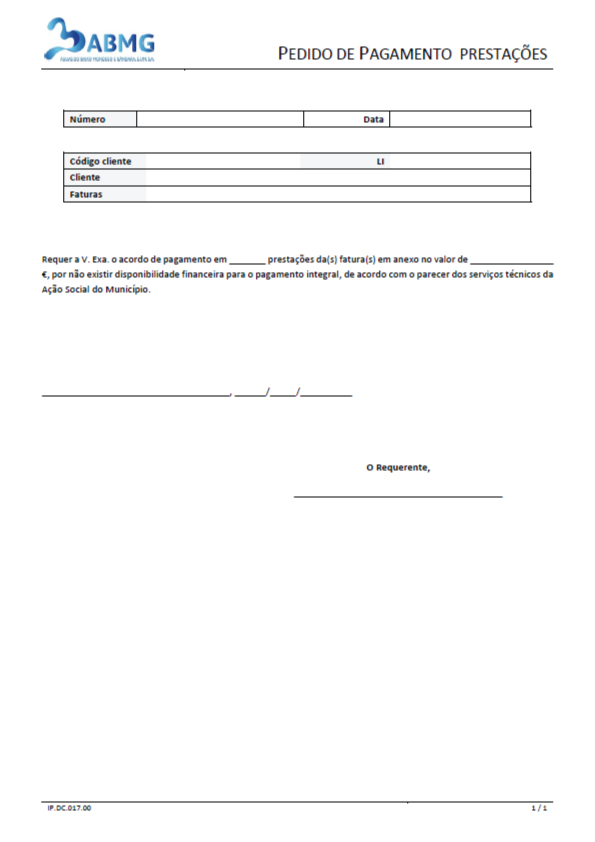 Pedido de pagamento em prestações
