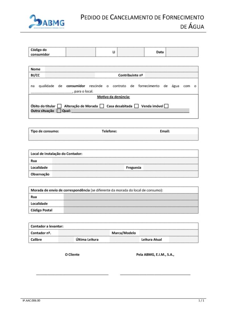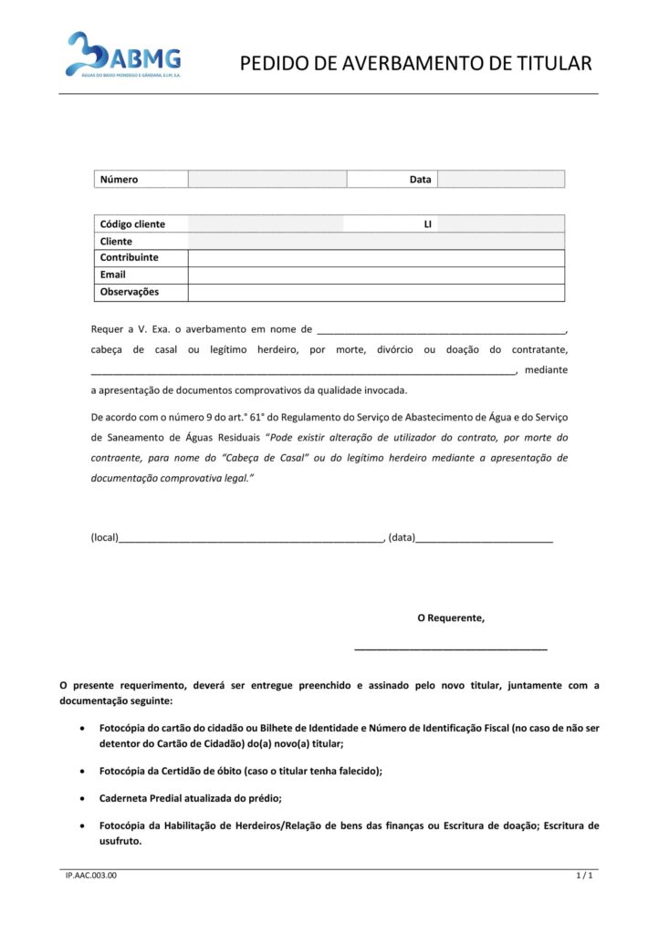 Requerimento para Suspensão Excecional e Temporária de Contratos de Fornecimento de Água