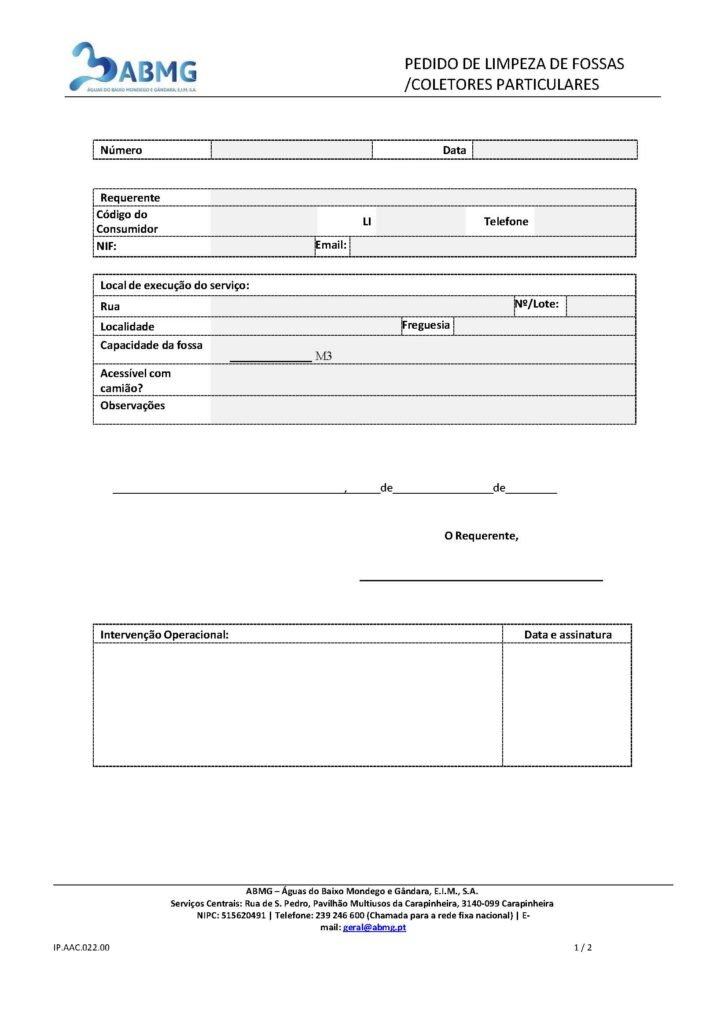 Pedido de Limpeza de Fossa / Coletores Particulares