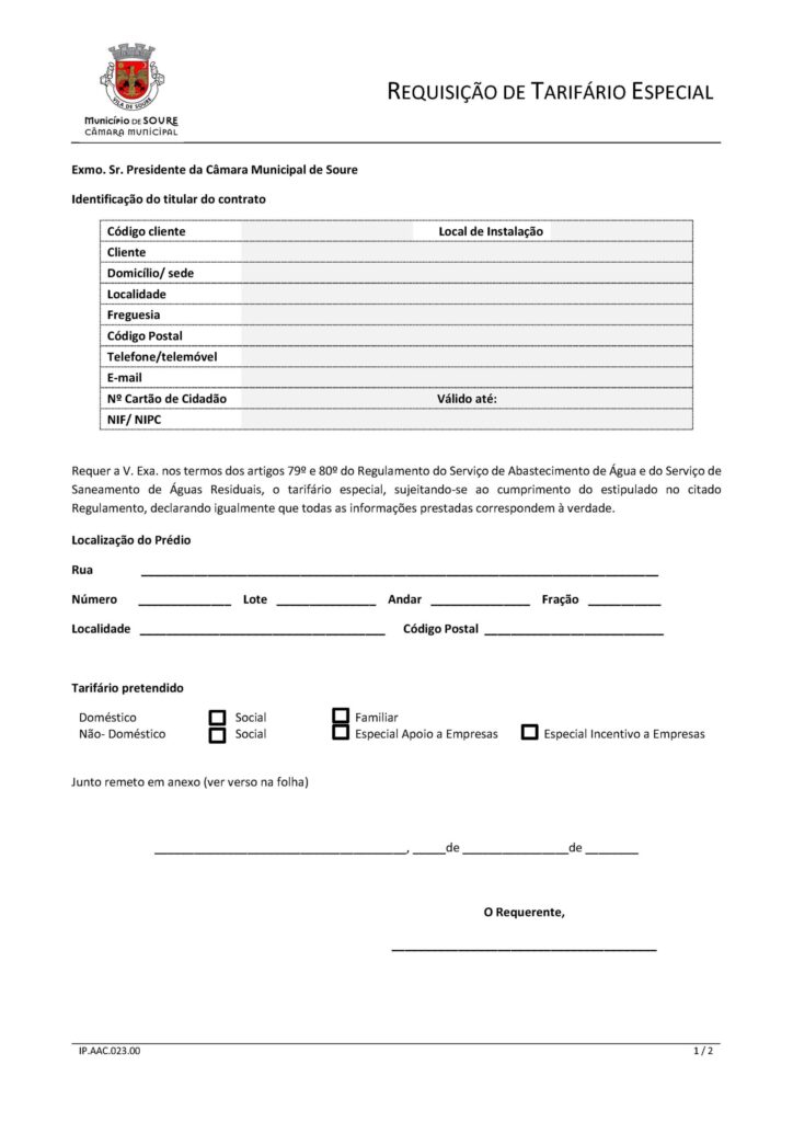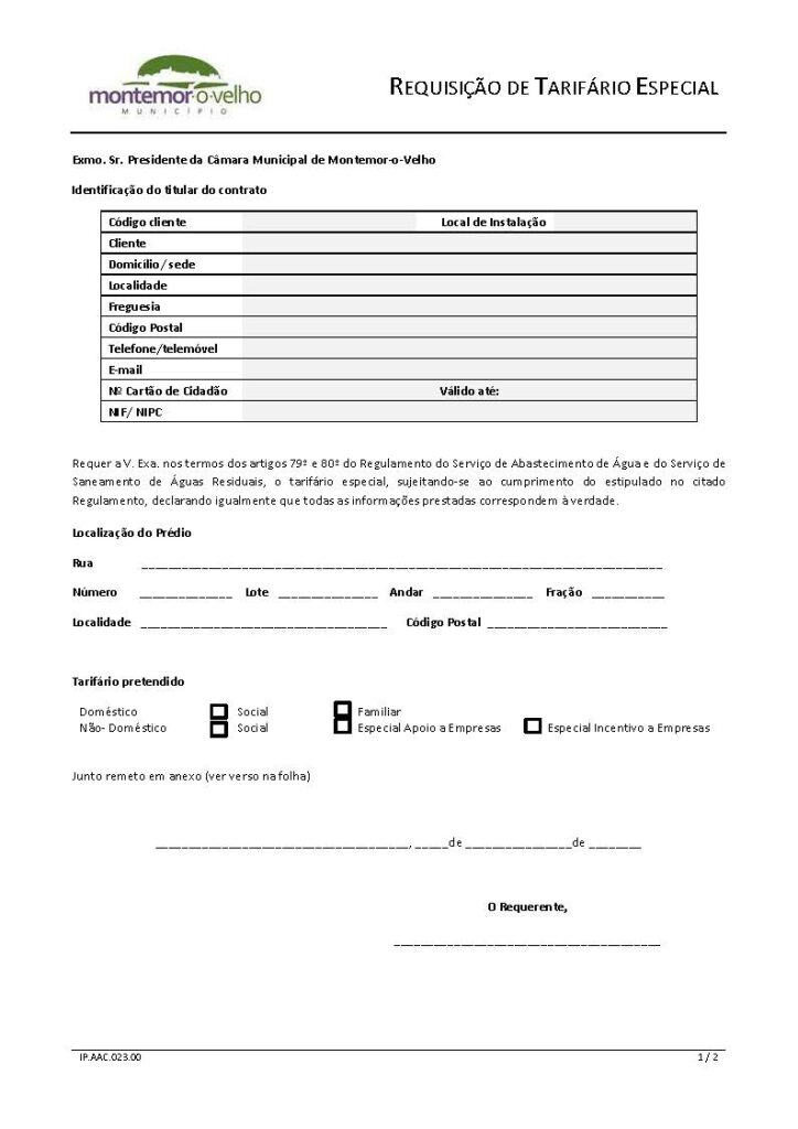 Requisição Tarifário Especial – Município de Montemor-o-Velho