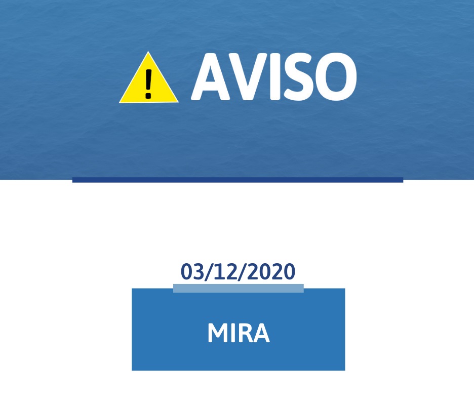 Informam-se os utilizadores do Casal de São Tomé, concelho de Mira, que podem verificar-se períodos de interrupção do abastecimento de água, das 9H00 às 13H00, do dia 03/12/2020, em consequência de uma nova ligação de conduta na Rua do Cruzeiro.