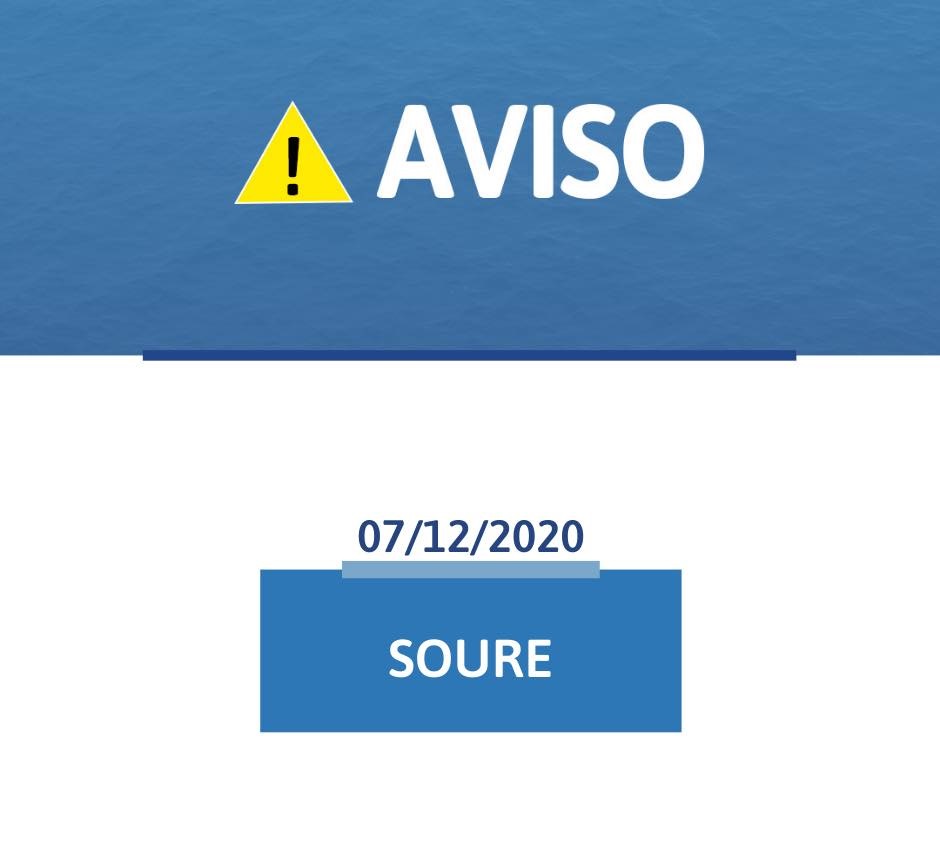Informam-se os utilizadores do Casal São Pedro, Casal Cimeiro, Casal do Marachão, Casal das Neras, Painça de Baixo e Figueiró do Campo, concelho de Soure, que podem verificar-se períodos de interrupção do abastecimento de água, até às 10H00, do dia 07/12/2020, em consequência de uma rotura.