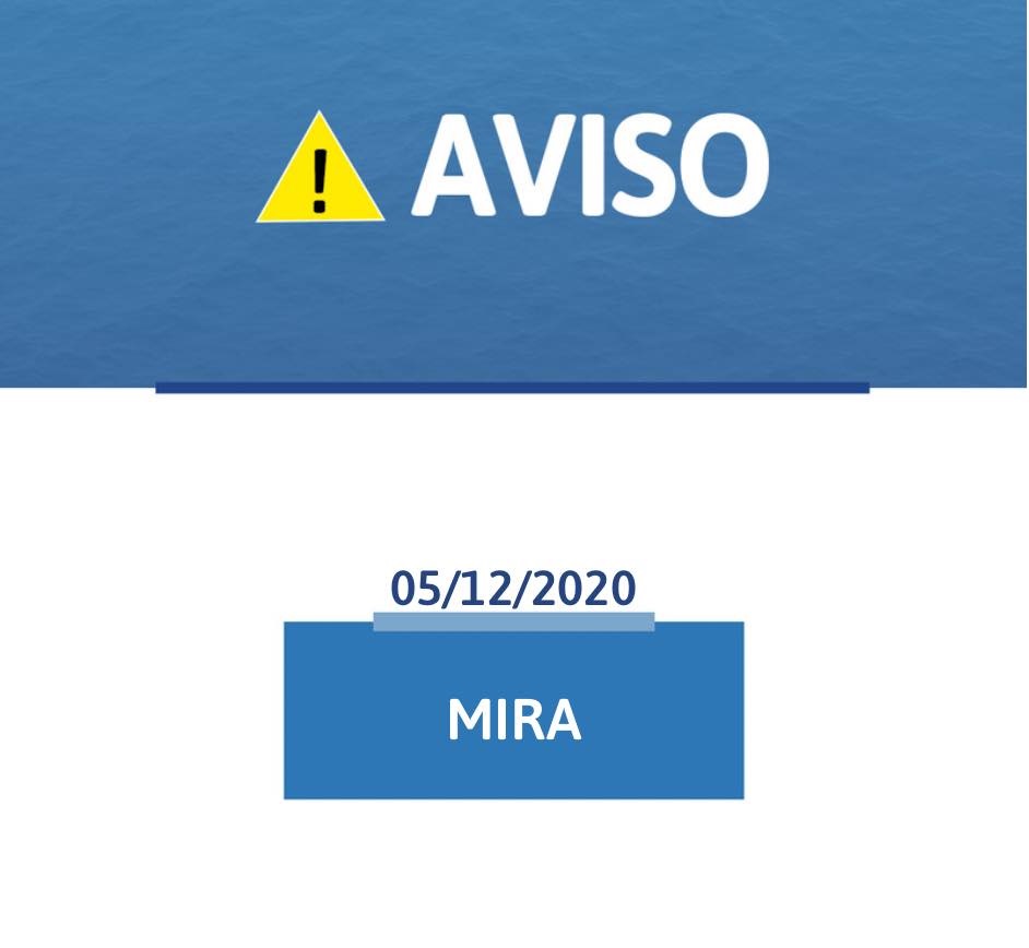 Informam-se os utilizadores da Rua do Casal Sobreiro e do Cabeço de Mira, concelho de Mira, que podem verificar-se períodos de interrupção do abastecimento de água, até às 16H00, do dia 05/12/2020, em consequência de uma rotura.