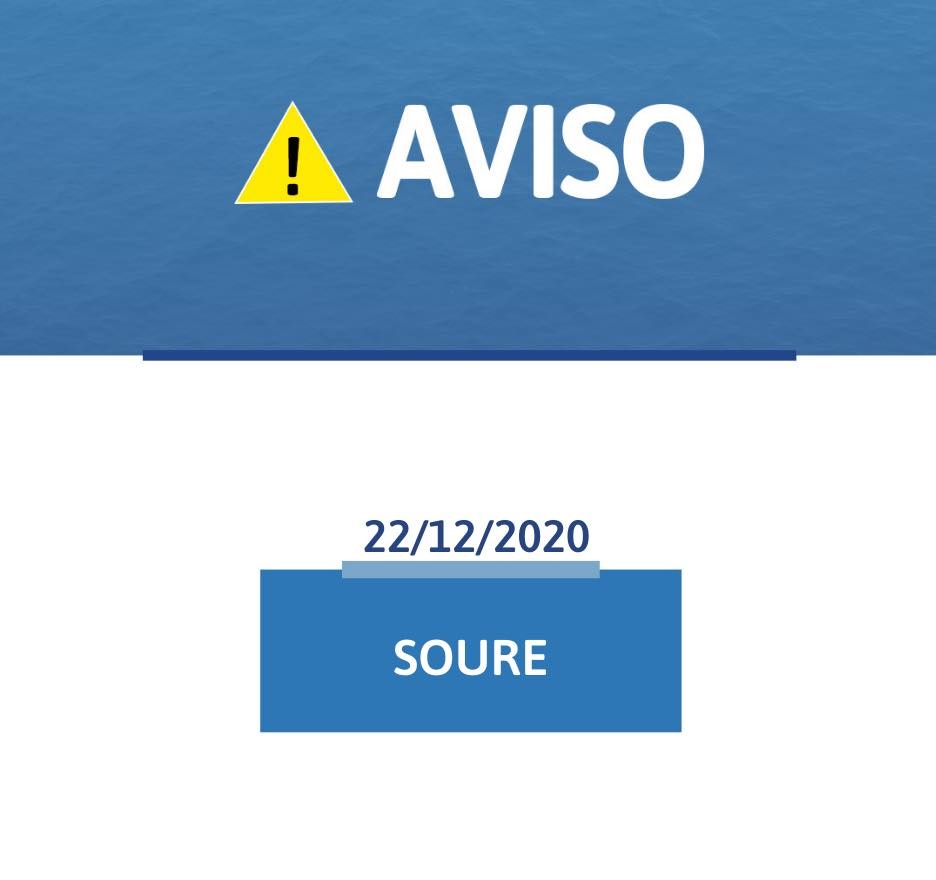 Informam-se os utilizadores de Sobral de Baixo, concelho de Soure, que podem verificar-se períodos de interrupção do abastecimento de água, até às 12H00, do dia 22/12/2020, em consequência da reparação de uma rotura.