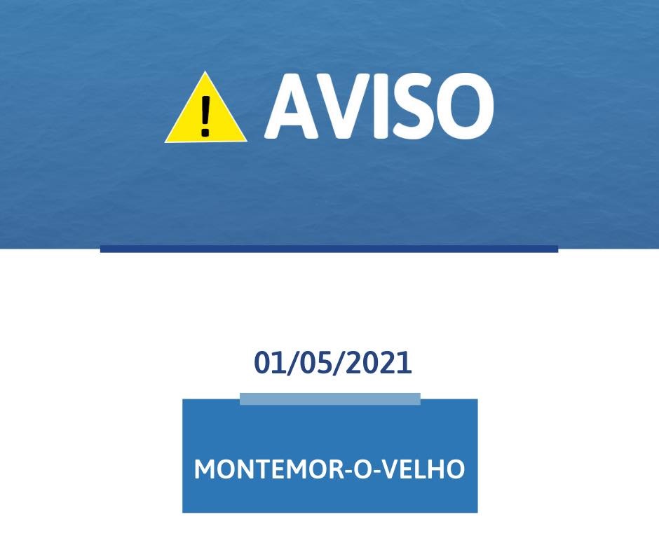 Informam-se os utilizadores da Volta da Tocha, concelho de Montemor-o-Velho, que podem verificar-se períodos de interrupção do abastecimento de água, até às 13H00, do dia 01/05/2021, em consequência da reparação de uma rotura.