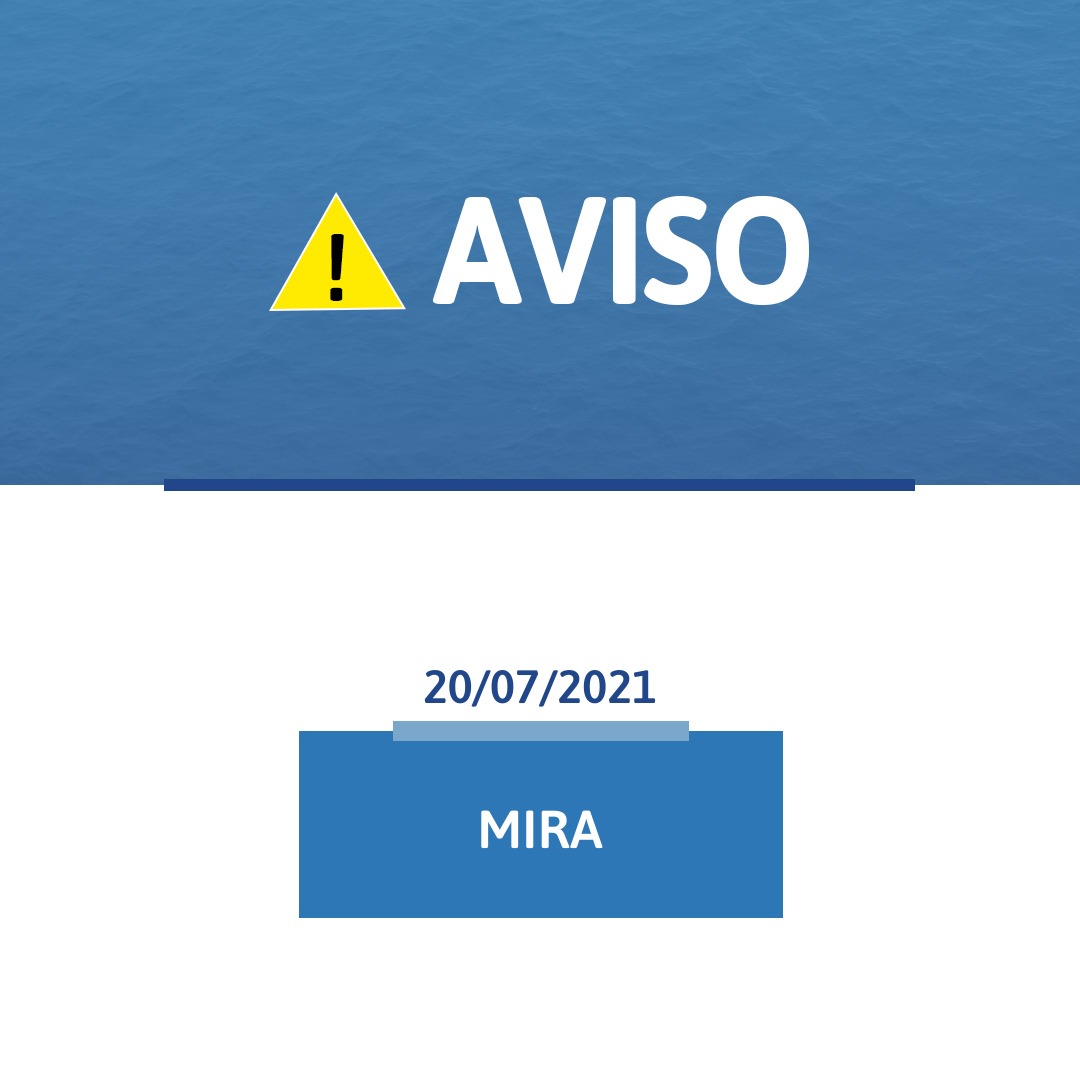 Informam-se os utilizadores da Praia de Mira, no Miróasis, lote A, concelho de Mira, que podem verificar-se períodos de interrupção do abastecimento de água, no dia 20/07/2021, durante a manhã, em consequência de reparação de rotura.