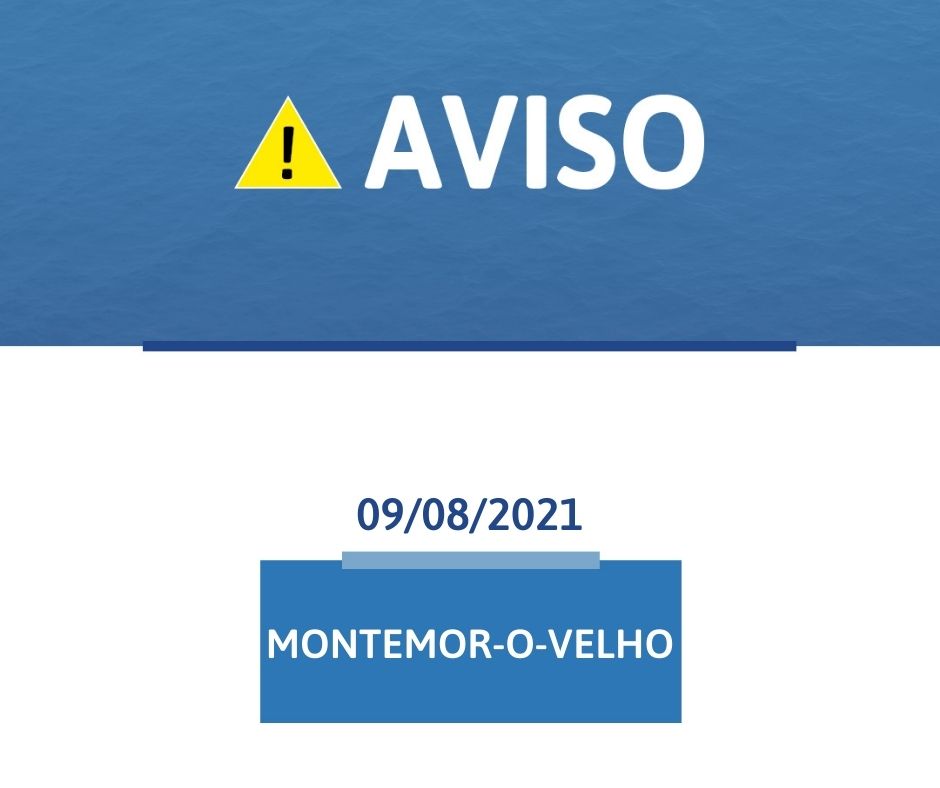 Informam-se os utilizadores de Arazede, concelho de Montemor-o-Velho, que podem verificar-se períodos de interrupção do abastecimento de água, durante o dia 09/08/2021, até às 12h00, em consequência de reparação de rotura.