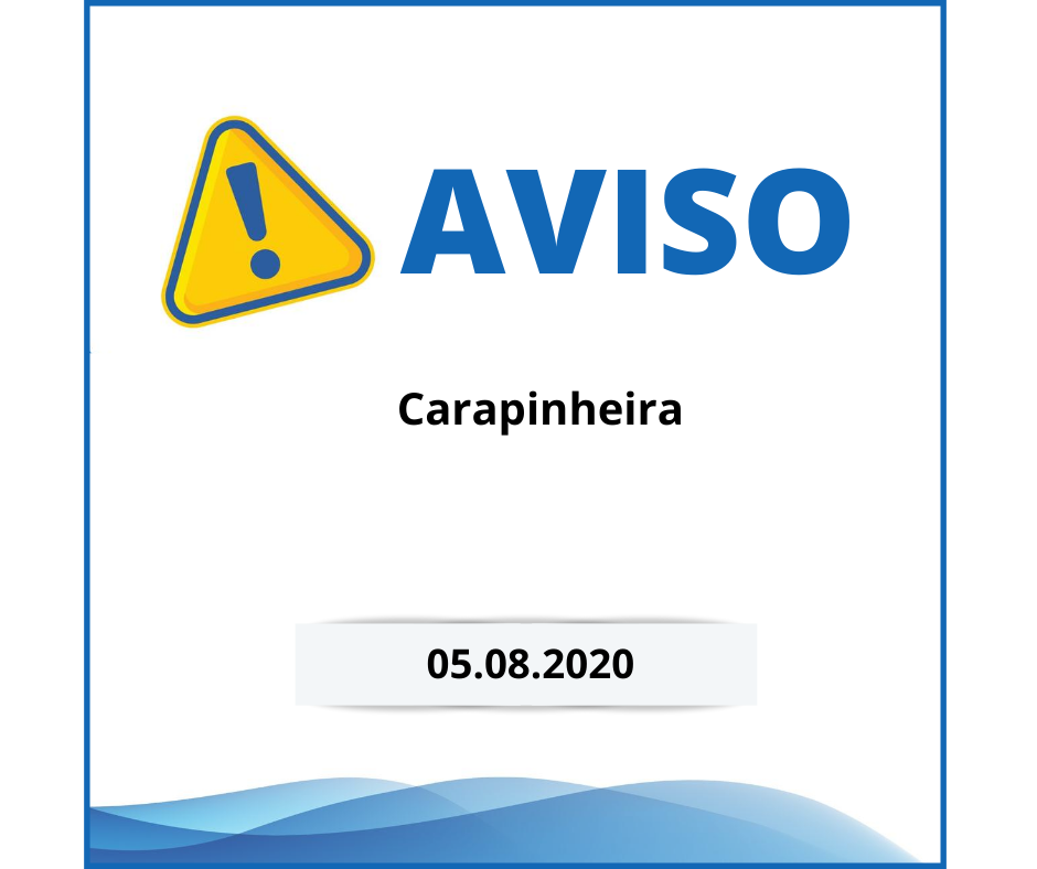 A ABMG informa os utilizadores da Rua Lavariz, freguesia de Carapinheira, concelho de Montemor-o-Velho, que poderão verificar-se períodos de interrupção do abastecimento de água, no dia 5 de agosto, das 9h00 até às 12h00, em consequência da reparação de uma rotura. A ABMG está a efetuar todos os esforços para implementar alternativas no abastecimento de água, por forma a minimizar os impactos provocado por esta avaria.