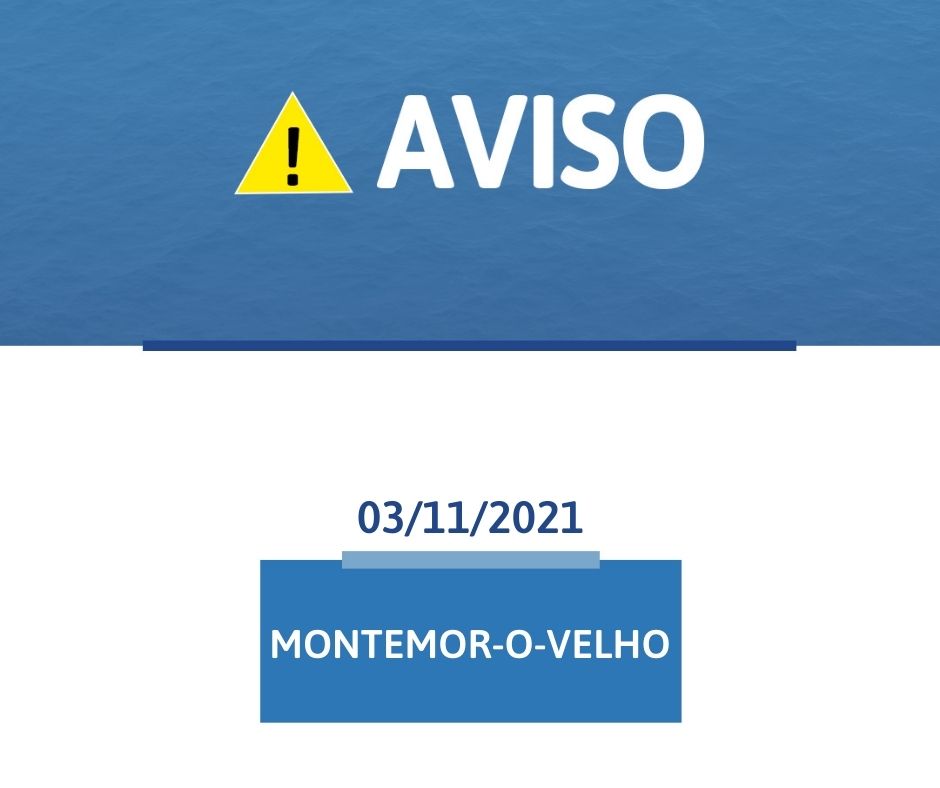 Informam-se os utilizadores de Liceia, concelho de Montemor-o-Velho, que podem verificar-se períodos de interrupção do abastecimento de água, no dia 03/11/2021, das 18h30 às 20h30, em consequência de reparação de rotura.