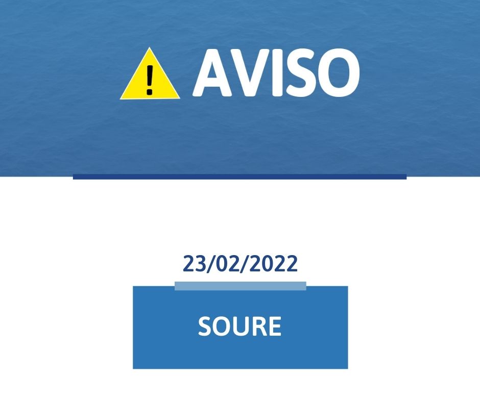 Informam-se os utilizadores de Casal do Barril, Meãs e Marco do Sul, concelho de Soure, que podem verificar-se períodos de interrupção do abastecimento de água, no dia 23/02/2022, das 9h00 às 12h00, em consequência de reparação de rotura.