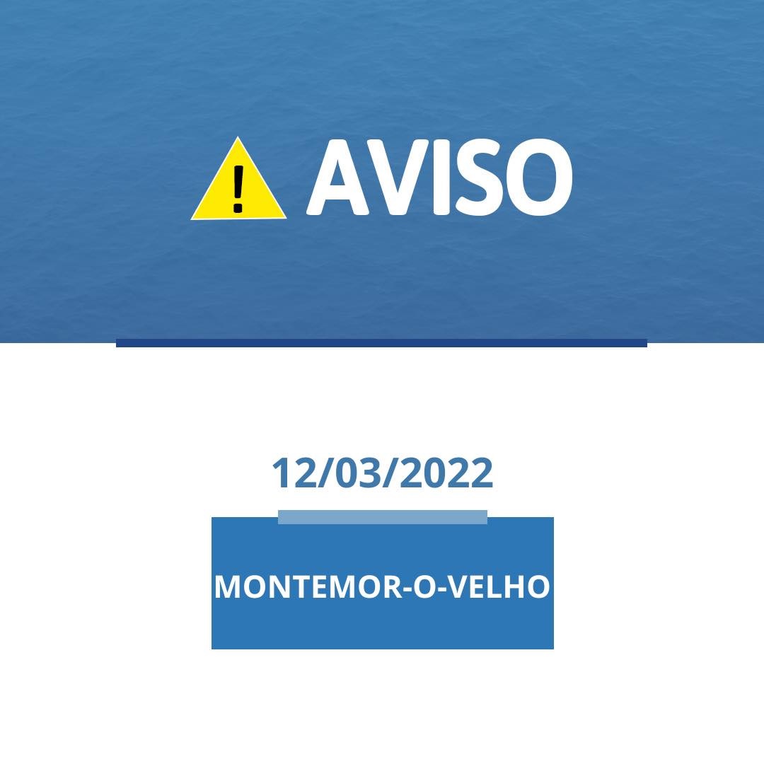 Informam-se os utilizadores da Urbanização da Luz e Vale do Mondego, concelho de Montemor-o-Velho, que podem verificar-se períodos de interrupção do abastecimento de água, no dia 12/03/2022, das 08h30 às 11h30, em consequência de reparação de rotura.