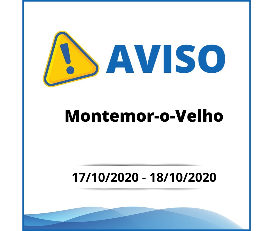 Informam-se os utilizadores da Bandorreira, Rua do Arneiro e Rua do Casal do Meio, concelho de Montemor-o-Velho, que podem verificar-se períodos de interrupção do abastecimento de água, entre as 22H00 do dia 17/10/2020 e as 09H00 do dia 18/10/2020, em consequência de uma rotura na Rua do Arneiro.