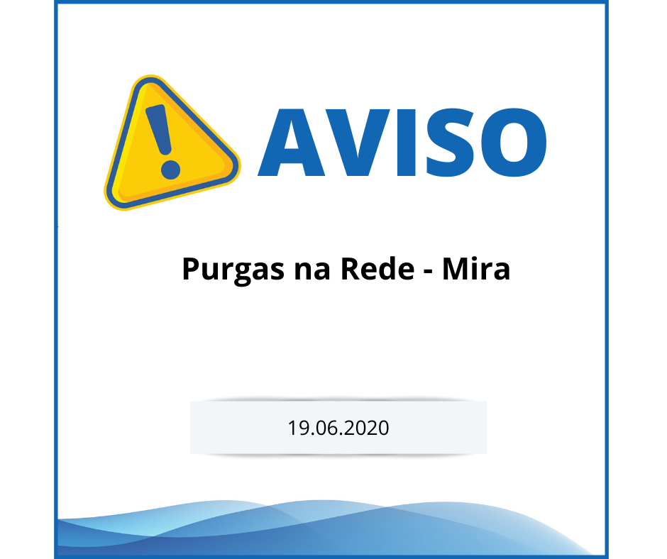 A ABMG está a realizar, durante a manhã de hoje, dia 19 de junho, purgas na rede do Município de Mira. De forma a não prejudicar os trabalhos em curso, solicita-se aos utilizadores do concelho que não fechem as torneiras que encontrarem abertas.