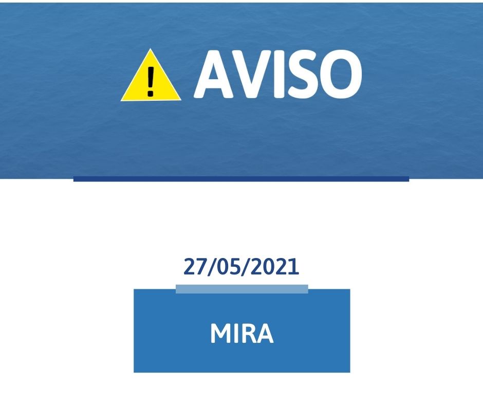 Informam-se os utilizadores de Seixo de Mira, Presa de Mira e Cabeço de Mira, concelho de Mira, que podem verificar-se períodos de perturbações na rede de abastecimento de água, entre as 14h30 e as 20h30, do dia 27/05/2021, podendo existir momentos de interrupção de fornecimento e alguma coloração, em consequência de trabalhos de limpeza e manutenção de reservatórios.
