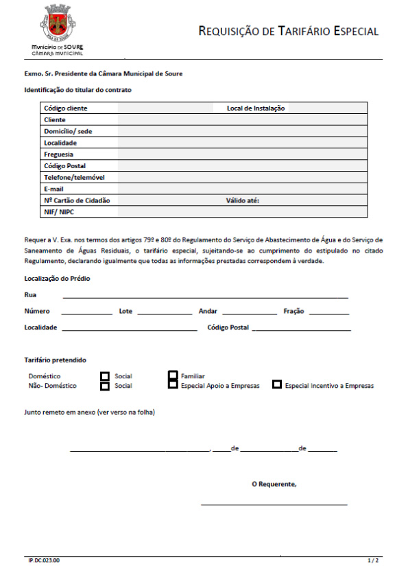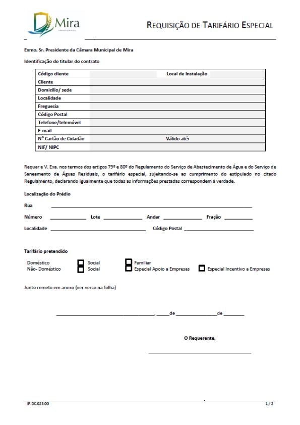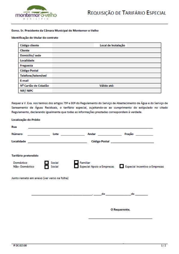 A ABMG dispõe de tarifários especiais para consumidores domésticos e também para empresas e instituições particulares. Para beneficiar destes tarifários deve apresentar nos Serviços de Atendimento o requerimento de tarifários especiais devidamente preenchido e acompanhado pelos documentos adicionais obrigatórios para ser avaliado e autorizado pelo Município do Concelho correspondente. Consulte os documentos obrigatórios aqui (artº 79 e 80).